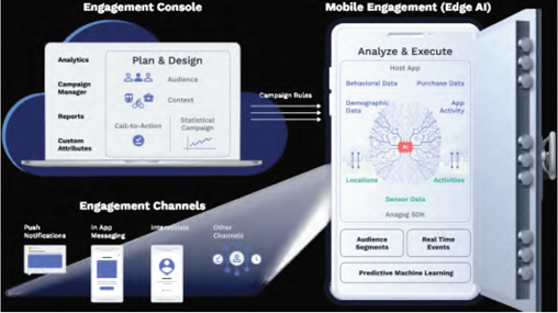 The Anagog platform is a transformative solution that changes the paradigm of mobile interaction from creating tension between privacy and personalized recognition for each user to a model that seeks to enhance both aspects. This platform utilizes edge artificial intelligence technology to use AI with minimal available processing power. By shifting all these AI computations inside users’ devices, companies will be able to have completely personalized interactions with their customers. This will be done at the right time, without the need for collecting customer data on a cloud infrastructure beyond the user’s reach, without violating user privacy, and without the need for tracking movements and behaviors using mechanisms like cookies or persistent identifiers [4]. It aims to establish a suitable interaction with the audience and offer them tailored solutions.