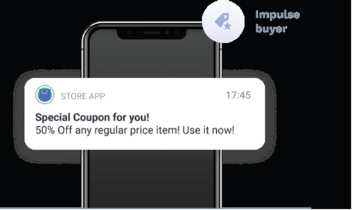The sent campaign message can vary, tailored uniquely for each user. A brief message could be sent to a user with limited time to decide and respond, while a longer message might be suitable for a user with more time, like someone starting a train journey. Or for an engaged user, a real-time discount coupon can be sent (similar to Figure 2). The platform ensures that suitable users engage at the right time and place.